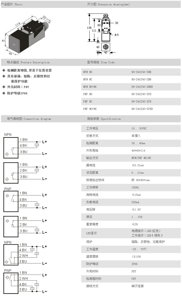 型號: 遠距離型接近開關(guān) HG-Z40J40-ZNK,HG-Z40J40-ZNB,HG-Z40J40-ZNKB,HG-Z40J40-ZPK,HG-Z40J40-ZPB,HG-Z40J40-ZPKB