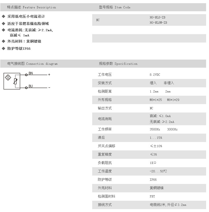 L8防爆型接近開關(guān) HG-NL8-ZB,HG-NL8M-ZB,