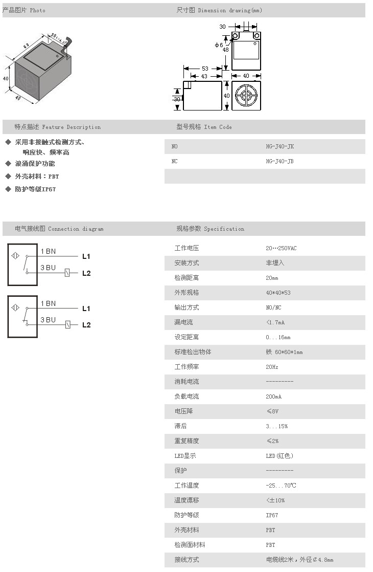 方型接近開(kāi)關(guān) HG-J40-JK,HG-J40-JB,