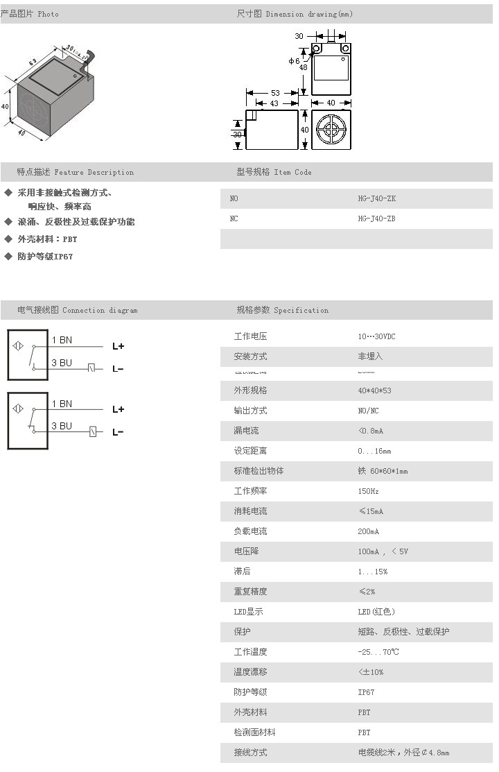 方型接近開關(guān) HG-J40-ZK,HG-J40-ZB,