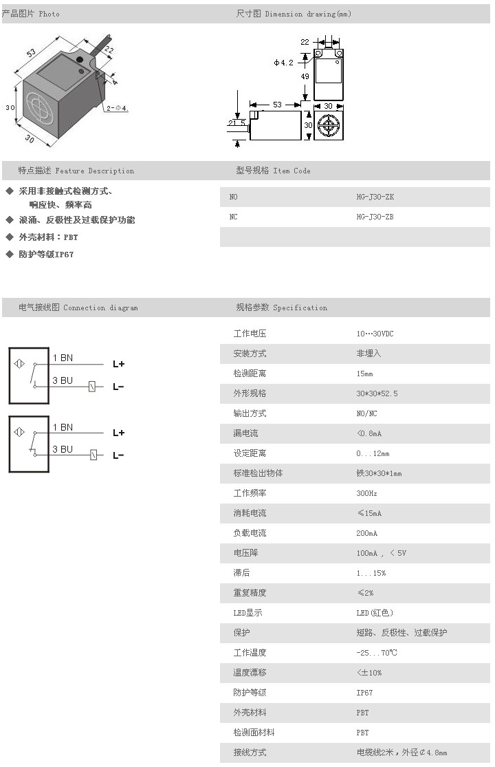 方型接近開關(guān) HG-J30-ZK,HG-J30-ZB,