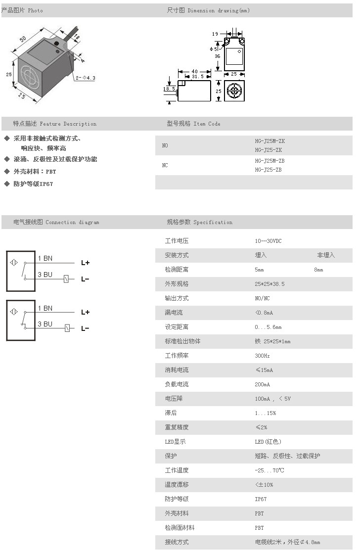方型接近開(kāi)關(guān) HG-J25M-ZK,HG-J25-ZK,HG-J25M-ZB,HG-J25-ZB,