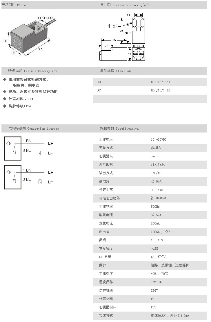 方型接近開關(guān) HG-J18/1-ZK,HG-J18/1-ZB,