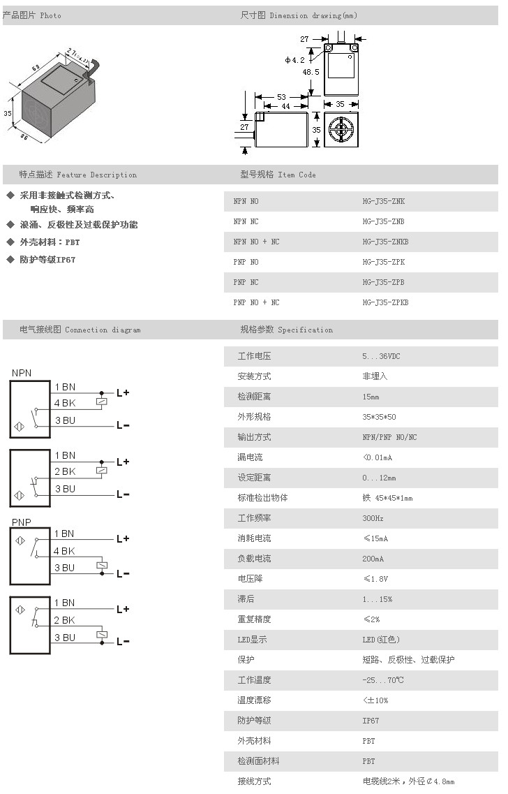 J35方型接近開(kāi)關(guān) HG-J35-ZNK,HG-J35-ZNB,HG-J35-ZNKB,HG-J35-ZPK,HG-J35-ZPB,HG-J35-ZPKB,