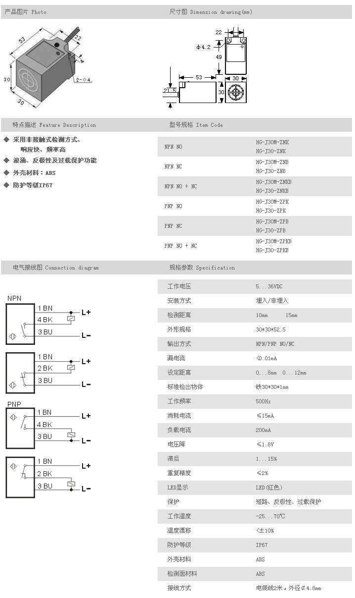 J30方型接近開關 HG-J30M-ZNK,HG-J30-ZNK,HG-J30M-ZNB,HG-J30-ZNB,HG-J30M-ZNKB,HG-J30-ZNKB,HG-J30M-ZPK,HG-J30-ZPK,HG-J30M-ZPB,HG-J30-ZPB,HG-J30M-ZPKB,HG-J30-ZPKB,