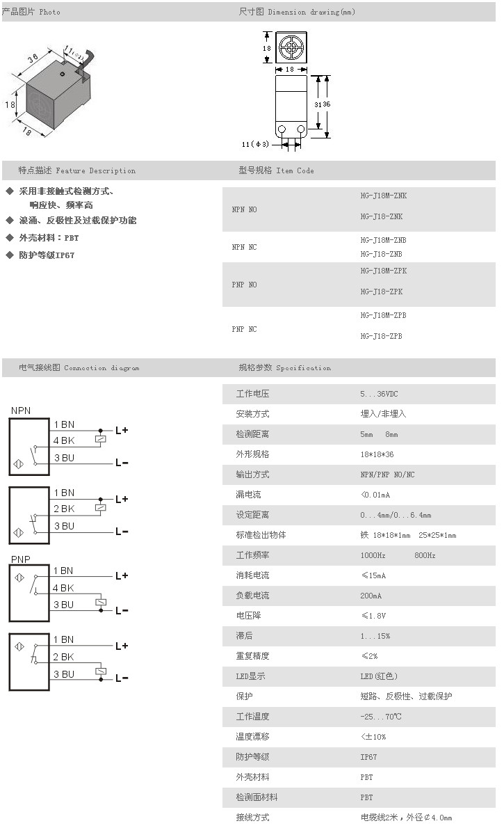 J18方型接近開關(guān) HG-J18M-ZNK,HG-J18-ZNK,HG-J18M-ZNB,HG-J18-ZNB,HG-J18M-ZPK,HG-J18-ZPK,HG-J18M-ZPB,HG-J18-Z