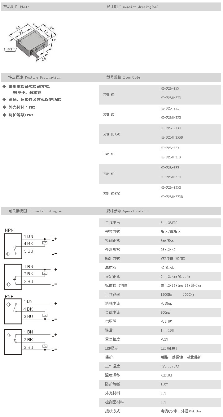 F26方型接近開關 HG-F26-ZNK,HG-F26M-ZNK,HG-F26-ZNB,HG-F26M-ZNB,HG-F26-ZNKB,