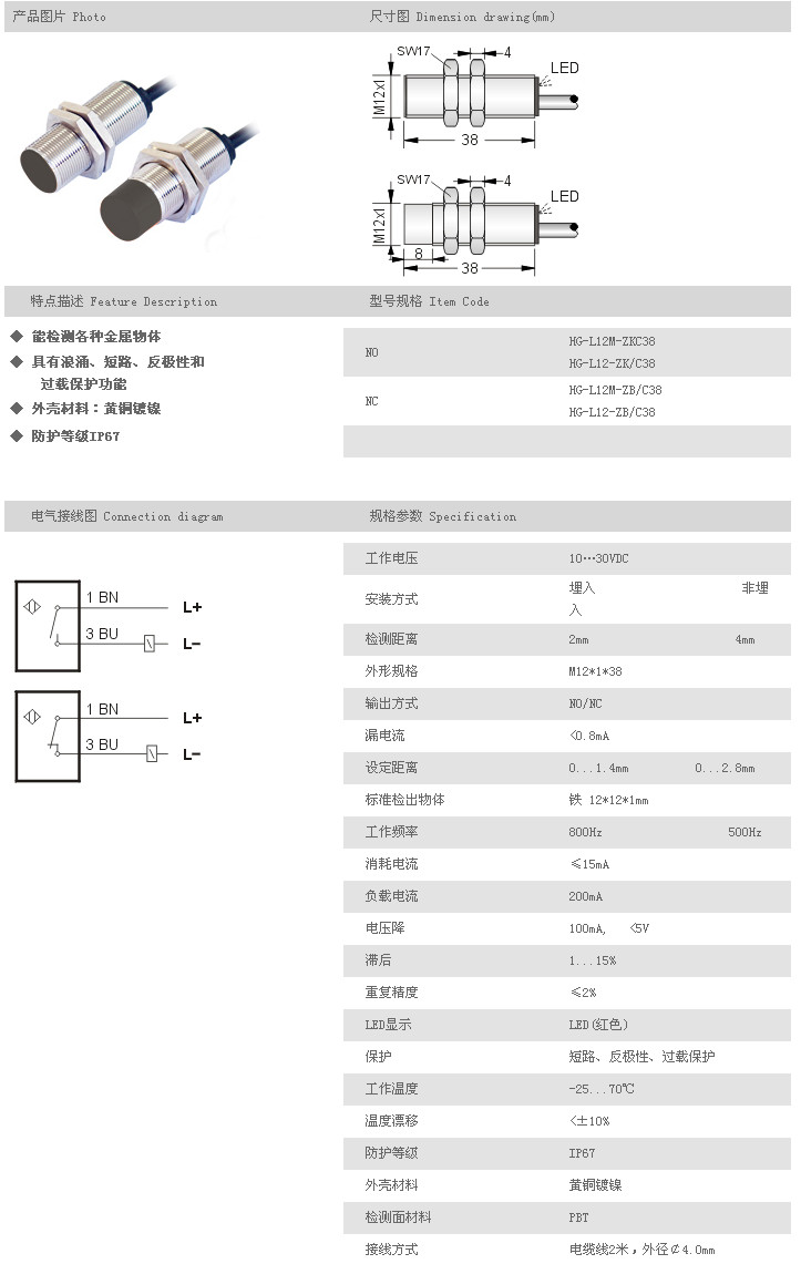 圓柱型接近開關(guān) HG-L12M-ZKC38,HG-L12-ZK/C38,HG-L12M-ZB/C38,HG-L12-ZB/C38,