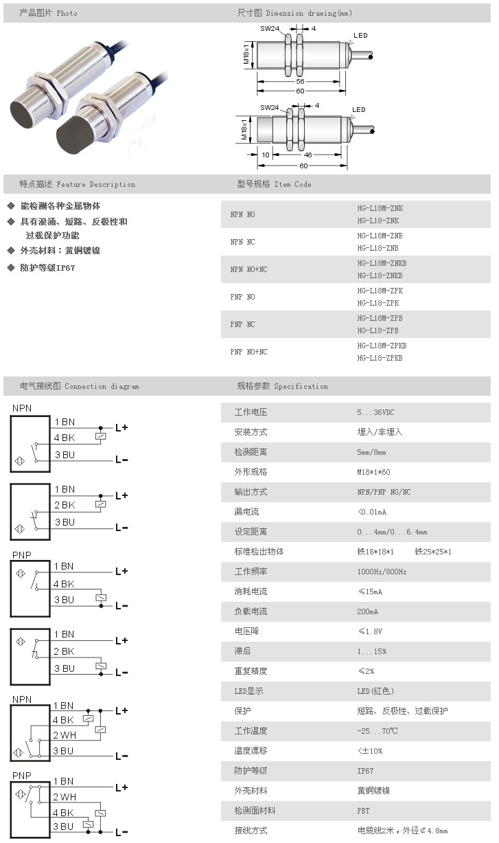 L18圓柱型接近開關(guān) HG-L18M-ZNK,HG-L18-ZNK,HG-L18M-ZNB,HG-L18-ZNB,HG-L18M-ZNKB,