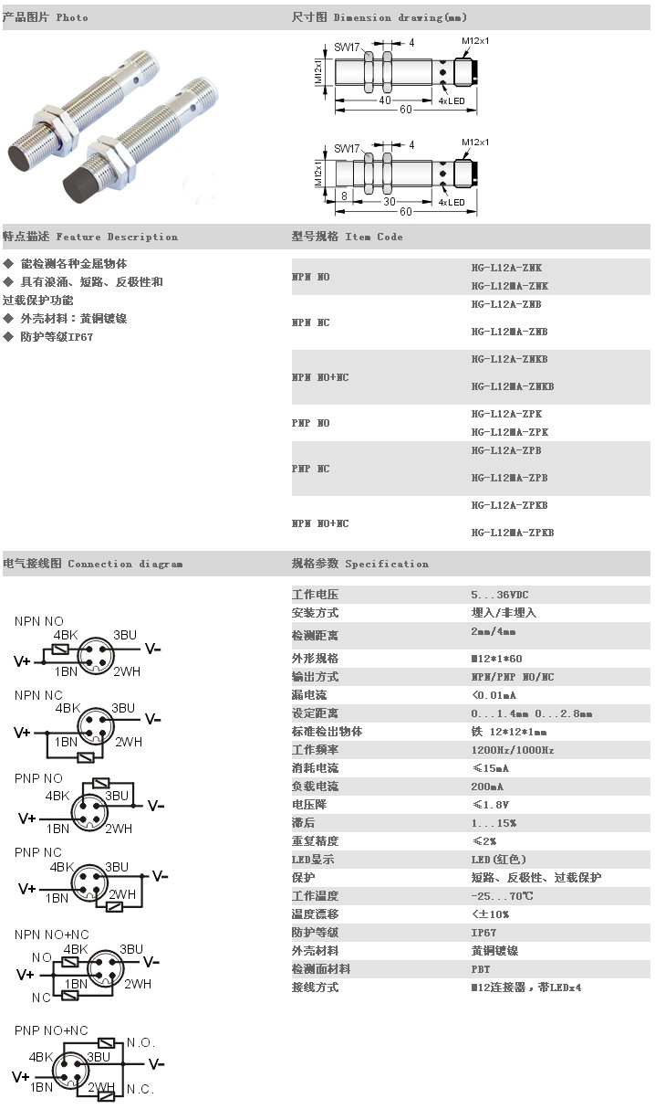 L12A圓柱型接近開關(guān) HG-L12A-ZNK,HG-L12MA-ZNK,HG-L12A-ZNB,HG-L12MA-ZNB,HG-L12A-ZNKB,HG-L12MA-ZNKB,
