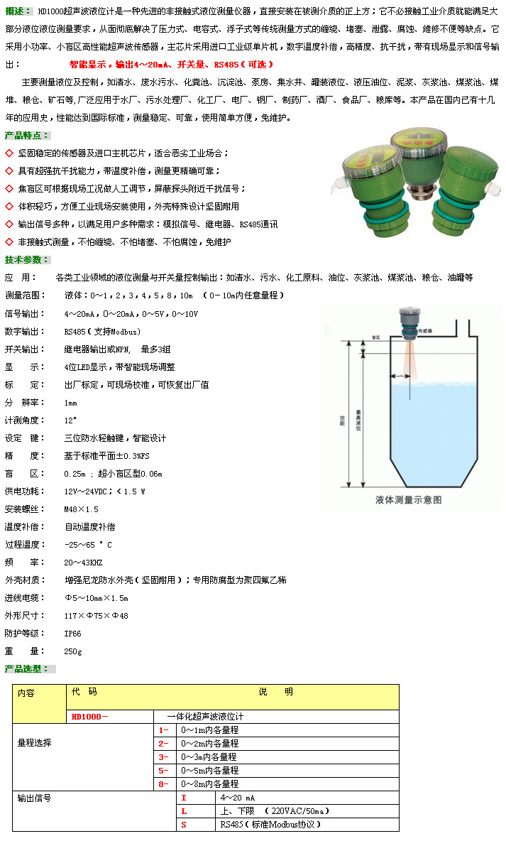 HD1000-1,HD1000-2,HD1000-3,HD1000-5,HD1000-8,HD1000,超聲波液位計(jì)