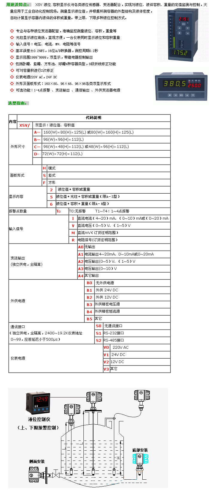 XSV/A-S,XSV/A-F,XSV/B-H,XSV/B-S,XSV/C-F,XSV/D-H,XSV/D-S,XSV/D-F,XSV,液位容積顯示儀