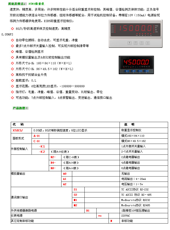 XSB5/A-H,XSB5/C-H,XSB5,稱重控制儀