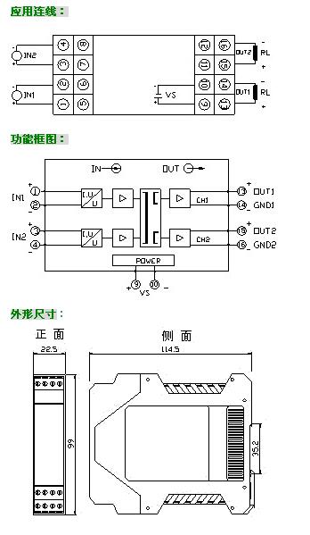 l 雙通道型:2路直流信號(hào)輸入,隔離輸出2路信號(hào)