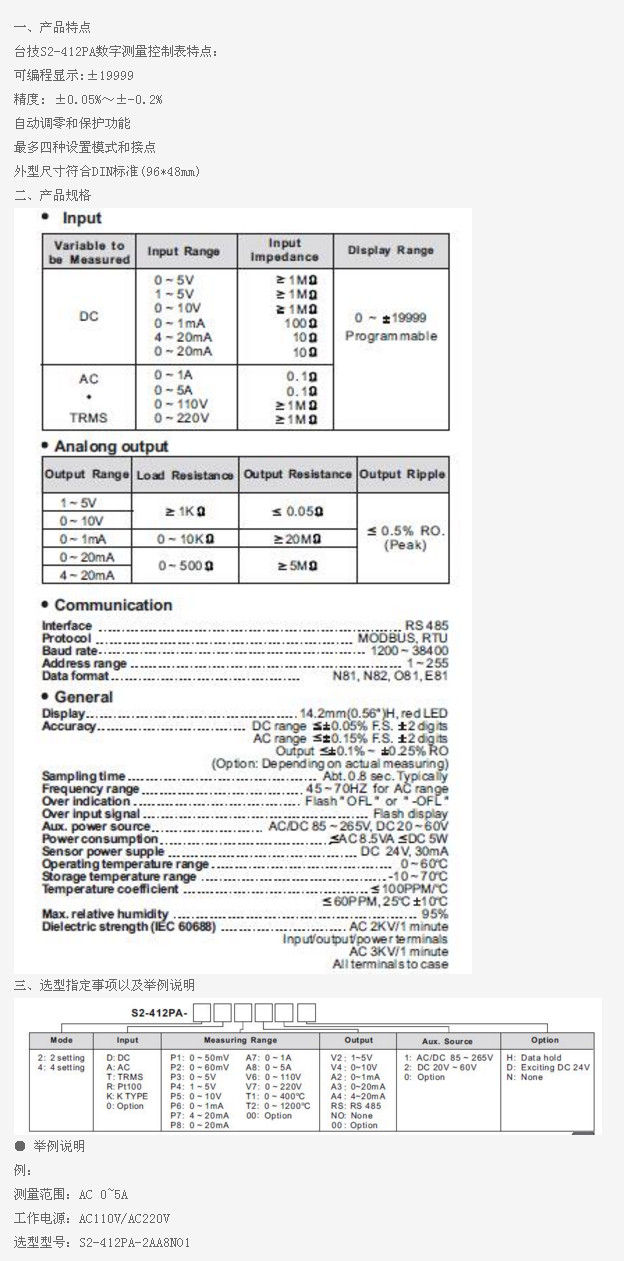 S2-412PA-2,S2-412PA-4,S2-412PA-2AA8NO1,S2-412PA,數(shù)字測量控制表