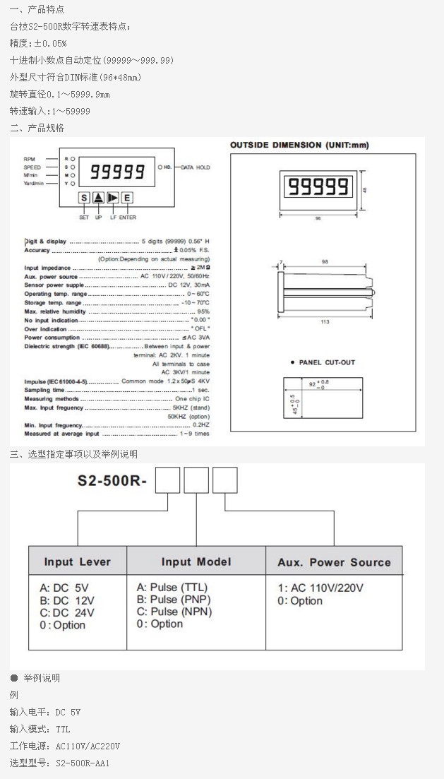 S2-500R-AA1,S2-500R-AB1,S2-500R-AC1,S2-500R-BA1,S2-500R-BB1,S2-500R,數(shù)字轉(zhuǎn)速表