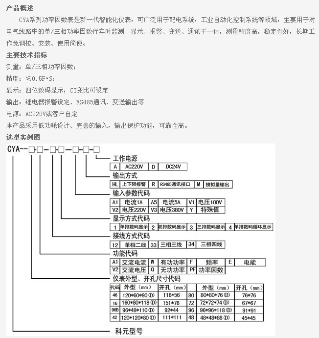 CYA-46-PF,CYA-16-PF,CYA-96B-PF,CYA-42-PF,CYA-80-PF,CYA-72-PF,CYA-96-PF,CYA-48-PF,CYA,功率因數(shù)表 |