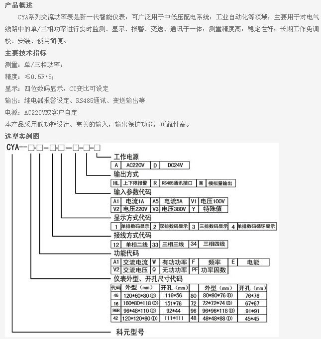 CYA-46-W,CYA-16-W,CYA-96B-W,CYA-80-Q,CYA-72-Q,CYA-96-Q,CYA-48-Q,CYA,交流功率表