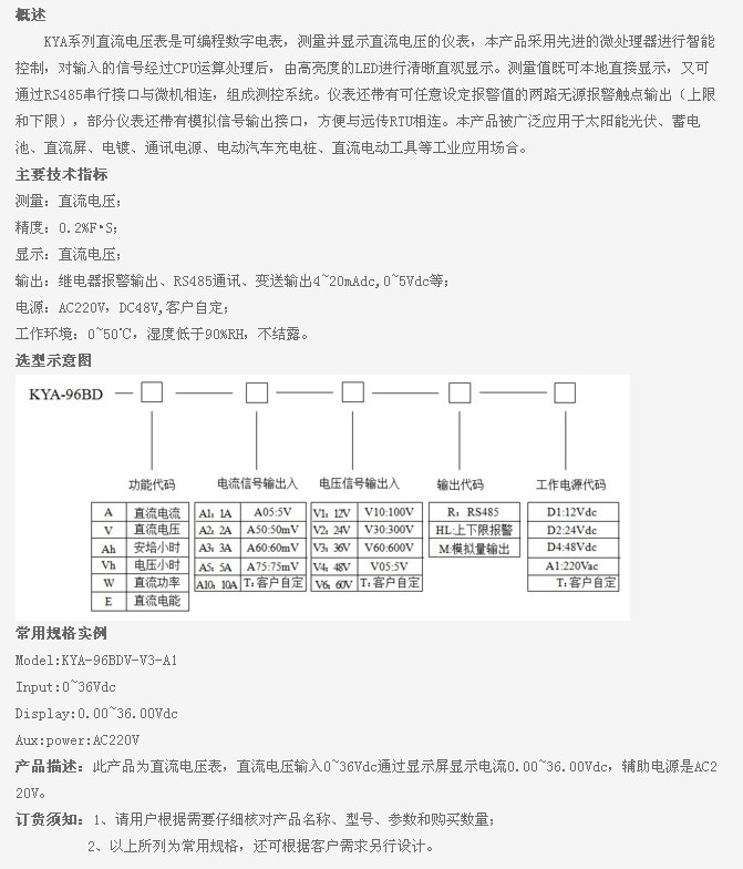 KYA-96BDV-V1,KYA-96BDV-V2,KYA-96BDV-V3,KYA-96BDV-V4,KYA-96BDV-V3-A1,KYA,直流電壓表