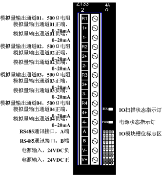 ZT332是4通道模擬量輸出模塊,內(nèi)部采用PWM調(diào)制技術(shù),工作穩(wěn)定可靠。ZT332和CPU模塊一起拼裝使用時,