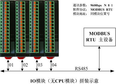 ZT332自帶一個RS485通訊口,內(nèi)部封裝了MODBUS協(xié)議,可以獨立工作,MODBUS從站地址等于從左向右排列的