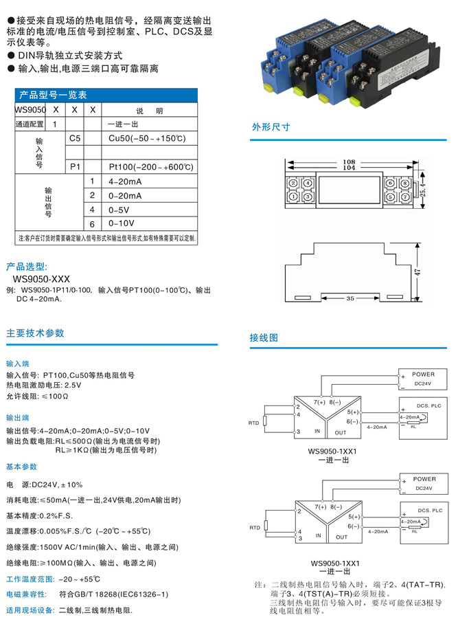 WS9050-1C51,WS9050-1C51,WS9050-1C52,WS9050-1P14,WS9050-1P16,WS9050,熱電阻信號隔離器