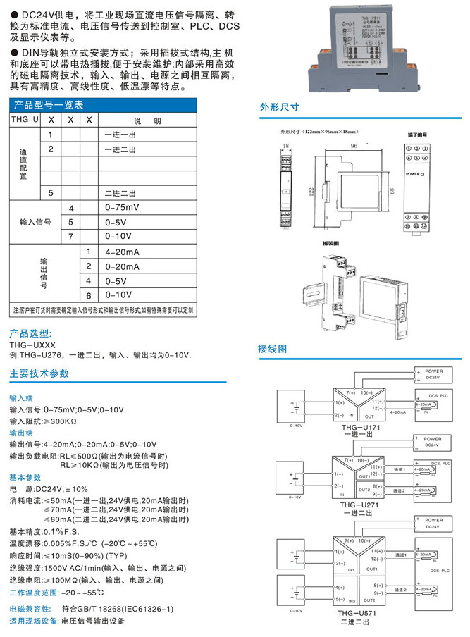 THG-U141,THG-U142,THG-U176,THG-U241,THG-U556,THG-U574,THG-U576,THG-U,電壓輸入隔離器