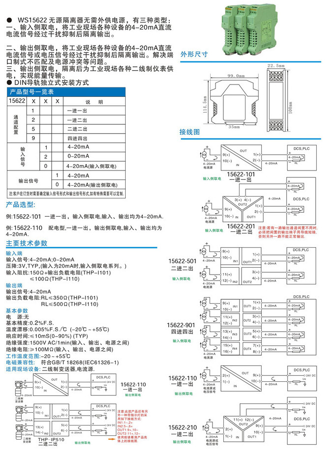 WS15622-111,WS15622-210,WS15622-520,WS15622-501,WS15622-900,WS15622,電流輸入配電隔離器