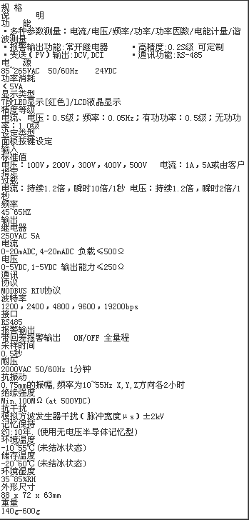 SWP-EM系列三相電力儀表采用先進(jìn)的交流采樣技術(shù),能分別測(cè)量電網(wǎng)中的電流,電壓,頻率,功率,功率因數(shù)等電參數(shù),可通過面板薄膜開關(guān)切換顯示內(nèi)容及設(shè)置內(nèi)部參數(shù)??捎肦S-485通訊接口與微機(jī)實(shí)現(xiàn)通訊,極大地方便了用電自動(dòng)化管理;也可將電量信號(hào)轉(zhuǎn)換成標(biāo)準(zhǔn)的直流模擬信號(hào)輸出;帶2路繼電器報(bào)警輸出。采用標(biāo)準(zhǔn)導(dǎo)軌式安裝,節(jié)約空間。