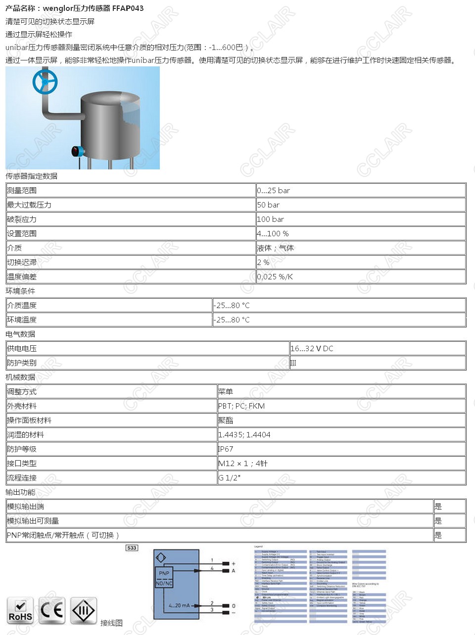FFAP043,wenglor壓力傳感器