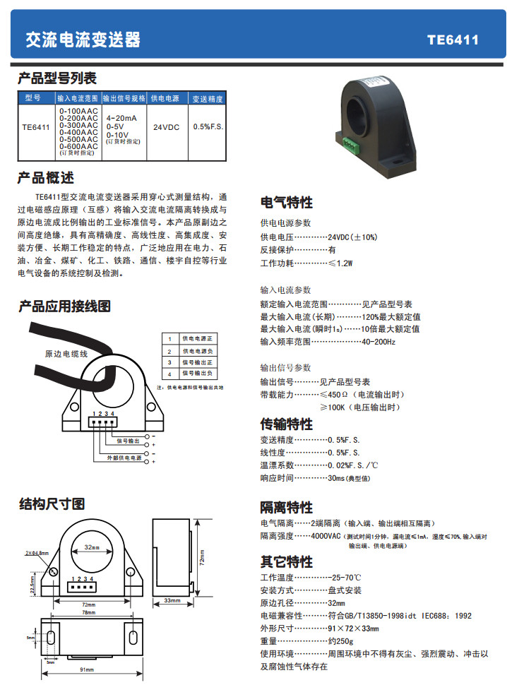 TE6411,交流電流變送器