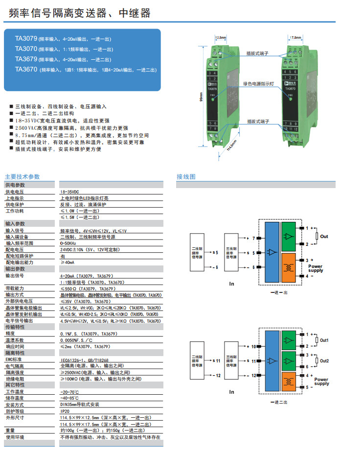 TA3079,TA3070,TA3679,TA3670,頻率信號隔離變送器、中繼器