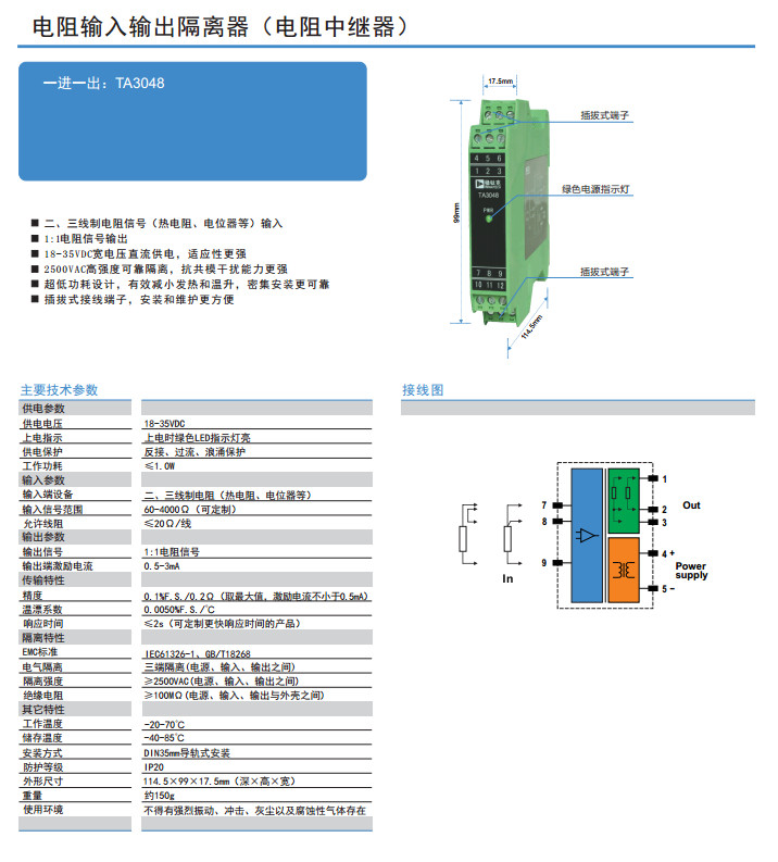 TA3048,電阻輸入輸出隔離器(電阻中繼器)
