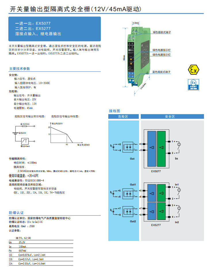 EX5077,EX5277,開關(guān)量輸出型隔離式安全柵
