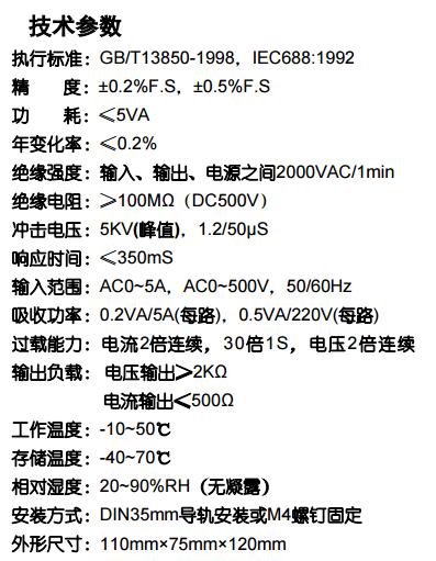 描述: 此型號為三相三線有功功率變送器,5Aac 電流互感器(CT)變比電流信號,100Vac電壓互感器(PT)變比電壓信號輸入,輸出4~20mAdc,功率基準數(shù)866W,工作電源AC22V.