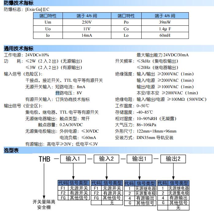THB-F1-1,THB-F2-44,THB-F開關(guān)量輸入安全柵