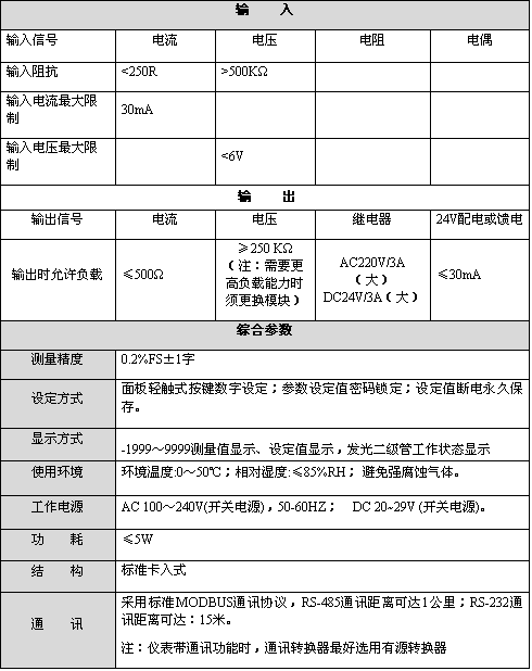 支持RS485、RS232串行接口,采用標準MODBUS RTU通訊協(xié)議 |