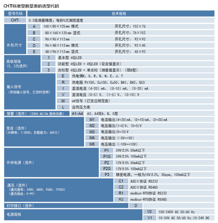 CHT標(biāo)準(zhǔn)型數(shù)顯表的基本性能