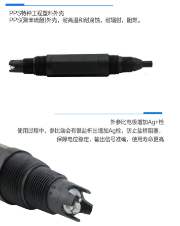 LR-PH5014高端復(fù)合電極,采用PPS特種工程塑料外殼,耐高溫和耐腐蝕,耐輻射,阻燃。外參比電極增加Ag+栓雙重螺紋設(shè)計(jì)超強(qiáng)適用性。使用過程中,參比端會(huì)有銀鹽析出增加Ag栓,防止鹽橋阻塞,保障電位穩(wěn)定,輸出信號(hào)準(zhǔn)確,使用壽命更高。