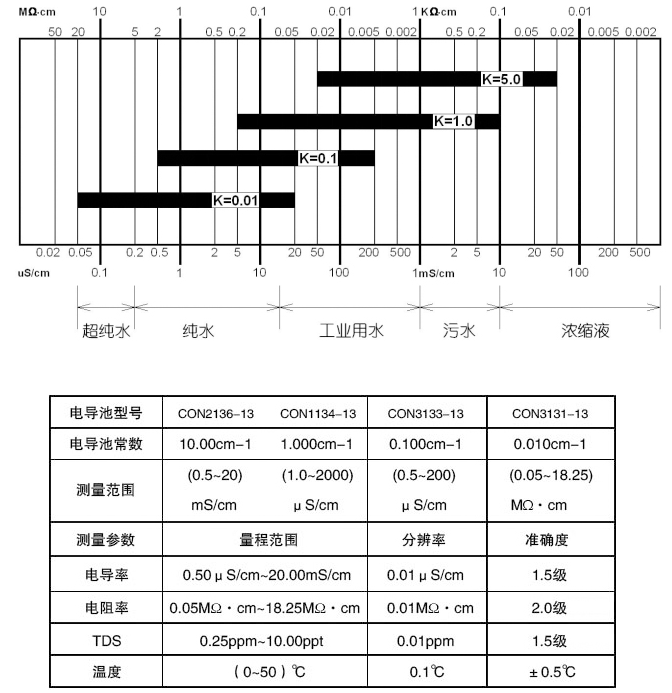 0.01電極:0.02~20.00 uS/cm-1 |