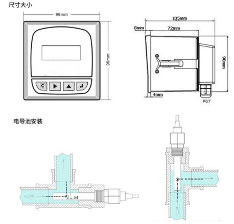 可進行電導(dǎo)率(TDS)和溫度的測量、上限控制、電流輸出、數(shù)字通訊