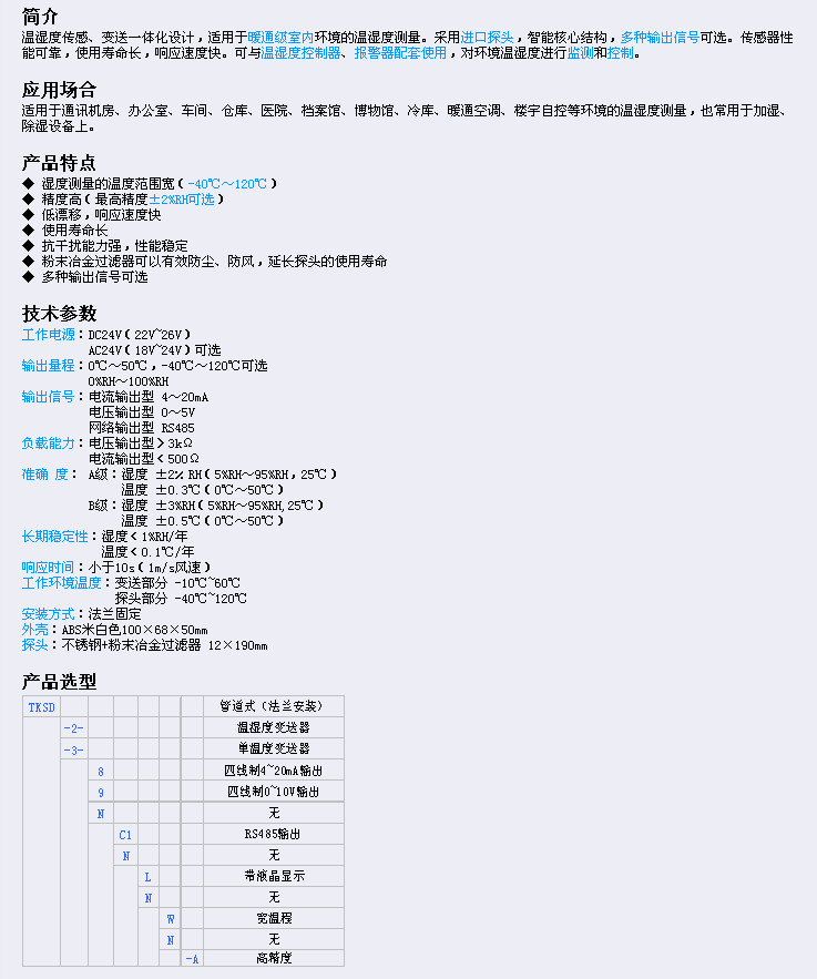 TKSD-2-8,TKSD-2-9,TKSD-2-N,TKSD-3-8,TKSD-3-9,TKSD-3-N,管道式溫濕度變送器