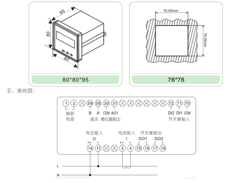 輸出:二路開關(guān)量輸出、一路模擬量輸出。