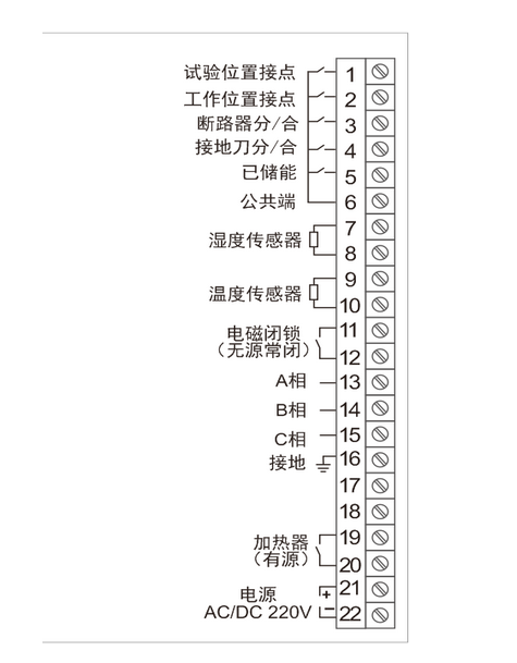 斷路器位置指示(無源觸點輸入):工作位置觸點閉合時,紅色模擬條亮,試驗位置觸點閉合時,綠色模擬條亮;