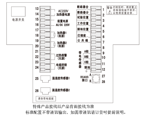 4、高壓帶電指示器的各輸入端分別接入對應(yīng)的高壓帶電傳感器,高壓帶電指示燈亮,閉鎖有效,閉鎖燈滅;高壓斷開后,帶電指示燈滅,閉鎖接觸,指示燈亮。在MT-ZT140系列產(chǎn)品中,三相(A、B、C)任意一相帶電對應(yīng)的指示燈亮,閉鎖觸點有效。