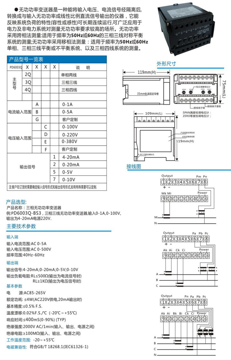 PD6003Q-BS3,PD6003Q,三相無(wú)功功率變送器