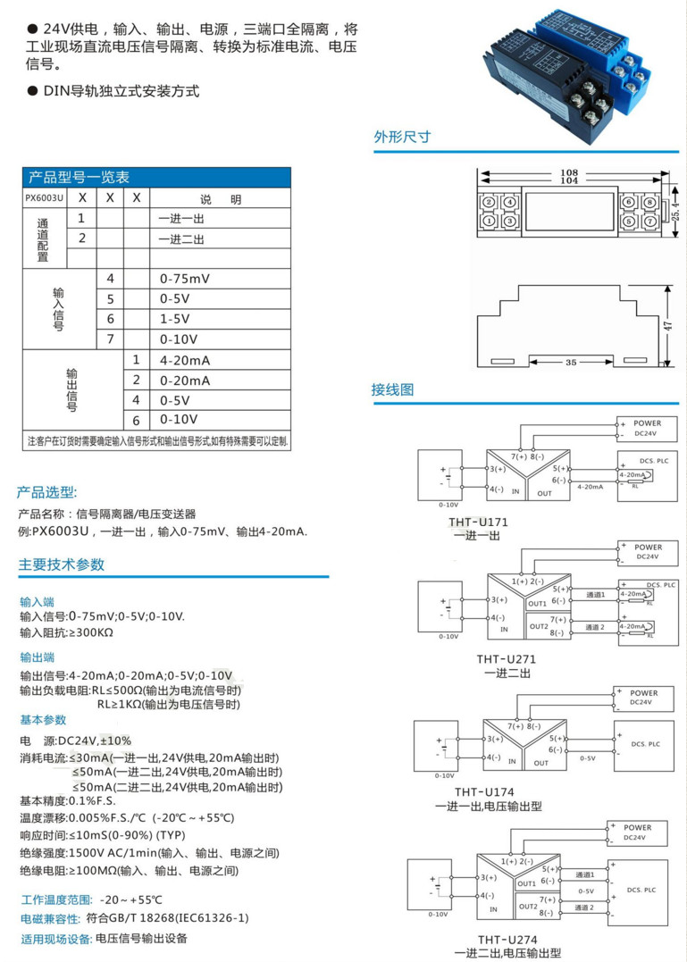 PX6003U141,PX6003U152,PX6003U164,PX6003U251,PX6003U276,PX6003U,有源電壓變送器