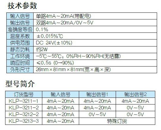 KLP-3211-1,KLP-3211-2,KLP-3212-2,KLP-3213-3,KLP-321,現(xiàn)場電源信號(hào)隔離處理器(一入二出)