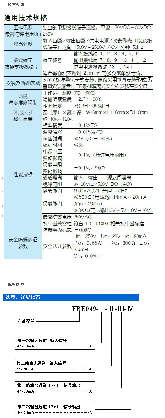 本隔離式安全柵需要獨立供電,供電電源-輸入回路-輸出回路之間電磁隔離。