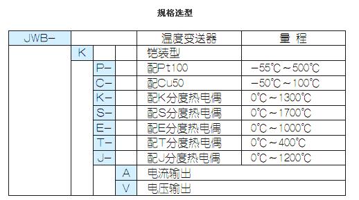 JWB-KP-A,JWB-KP-V,JWB-KC-A,JWB-KC-V,JWB-KK-A,JWB-KS-A,JWB-KK-V,JWB-K,鎧裝型溫度變送模塊